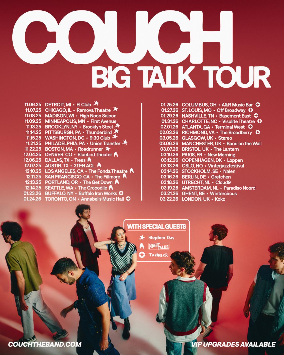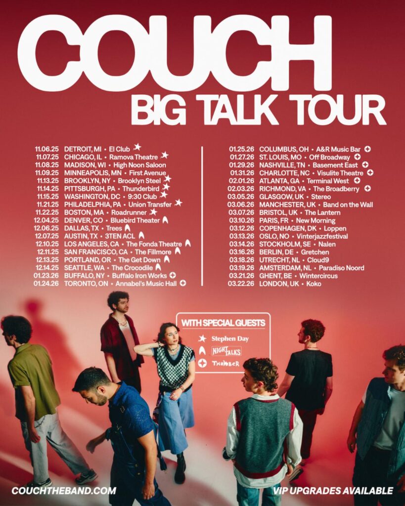 Now, Couch is preparing to release their debut full-length album Big Talk, paired with a headline tour featuring marquee stops at Roadrunner (Boston), The Fonda (LA), Brooklyn Steel (NYC), and 9:30 Club (DC).